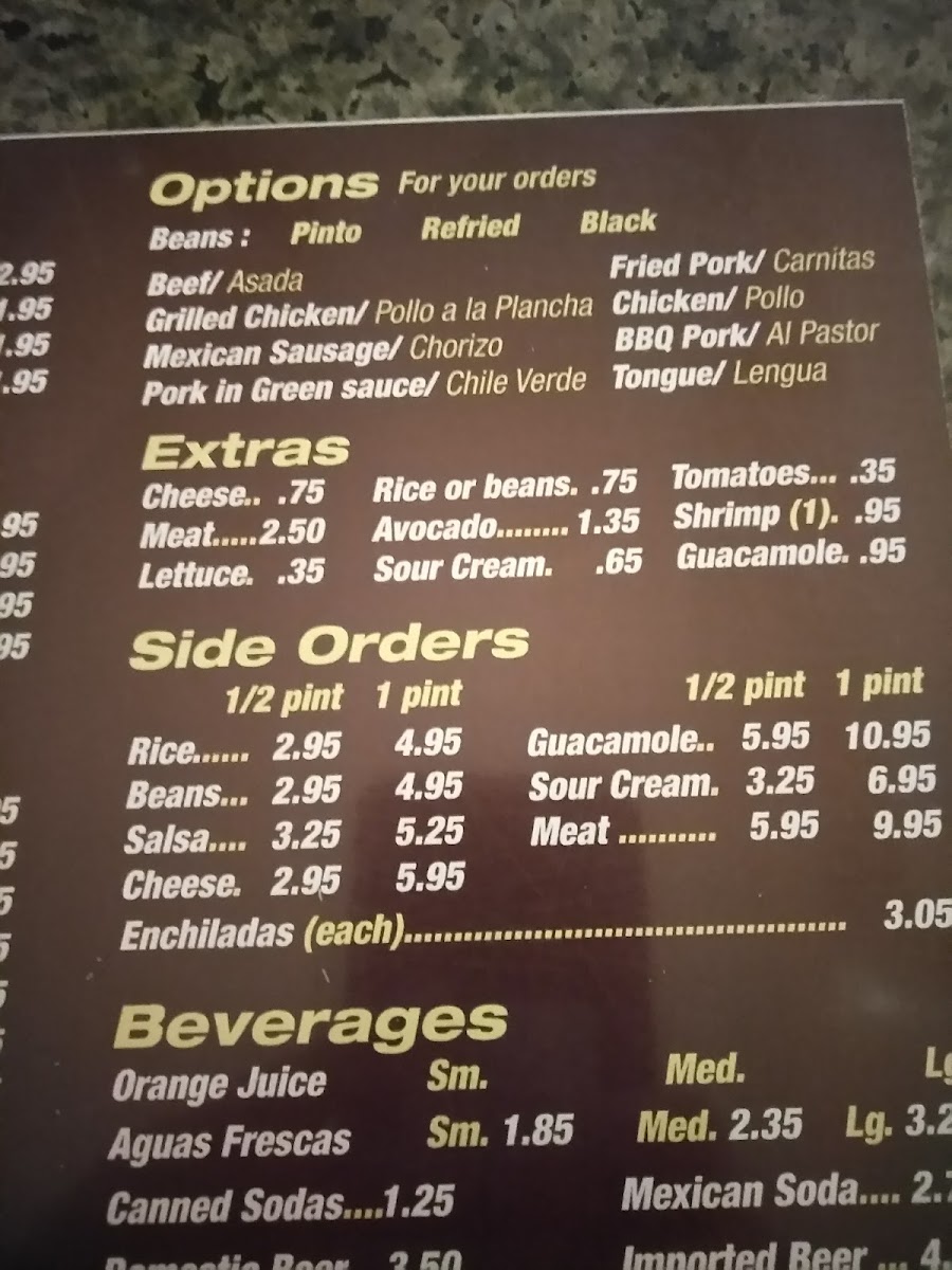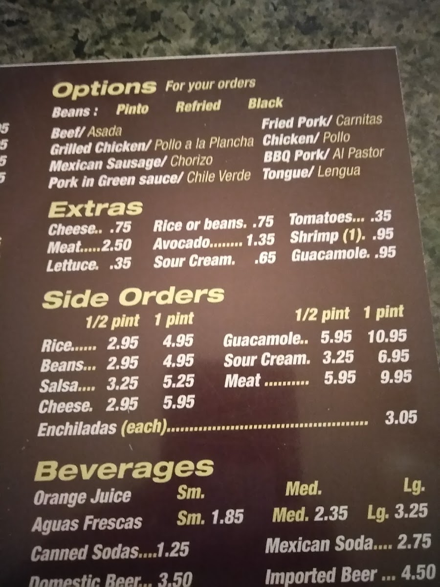 Served with rice, beans, rice, guacamole, onions and cilantro.